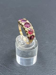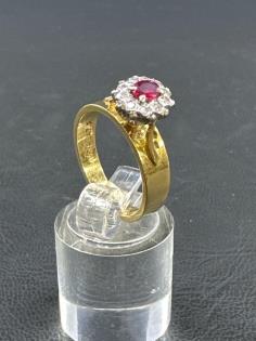 18CT GOLD & PLATINUM RUBY & DIAMOND RING - 5.6GM - SIZE O APPROX
