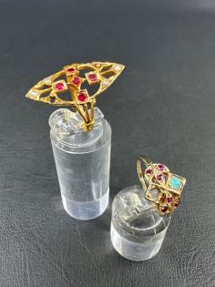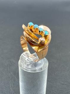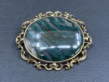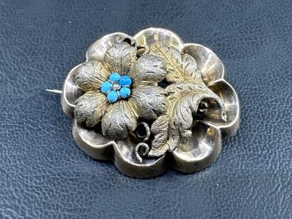 VICTORIAN GILT TURQUOISE BROOCH - 5.6GM - 3.6CM (W)