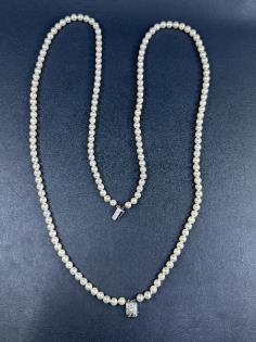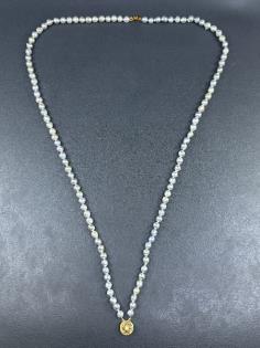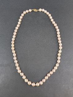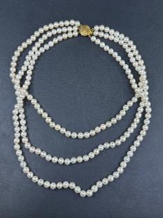 CULTURED AKOYA PEARL DOUBLE STRAND - 6.5-7MM MULTI COLOURED GREENISH-GREY BLUISH/GREY PINKISH/GREY SEMI BAROQUE SHAPE - 114 PEARLS 43 & 45CM (L) 14K GOLD PLATED CLASP AS VERIFIED BY SARGISONS