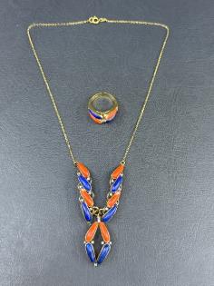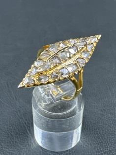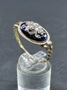 VICTORIAN UNMARKED 14CT GOLD DIAMOND & ENAMEL RING - 4GM - SIZE V APPROX