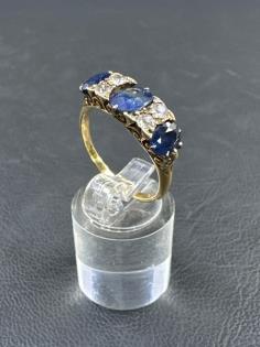18CT GOLD 4 DIAMOND & 3 SAPPHIRE RING - 4.5GM - SIZE R APPROX