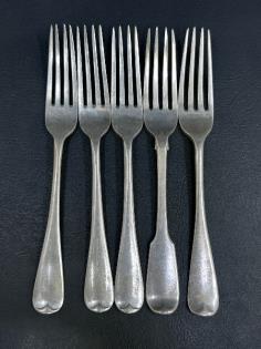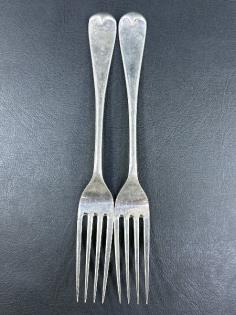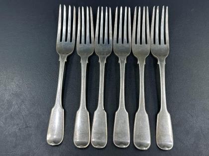 SET OF 6 STERLING SILVER FORKS - LONDON 1824 - RICHARD POULDEN - 446.8GM TOTAL - 20CM (L)