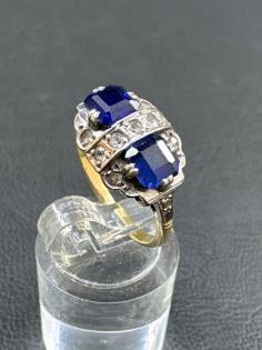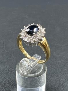 9CT GOLD SAPPHIRE & DIAMOND RING - 5.1GM - SIZE T APPROX