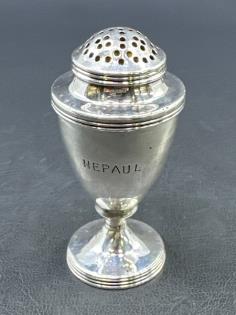 GEORGIAN STERLING SILVER POUNCE POT/CASTOR - LONDON 1801 - JOHN EMES - 32.8GM - 7CM (H)