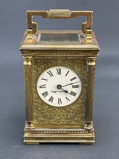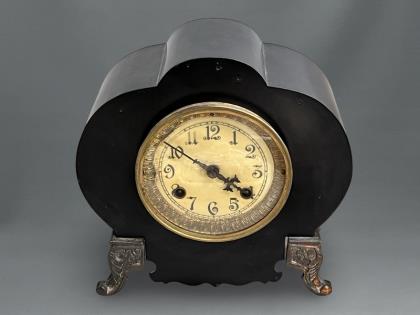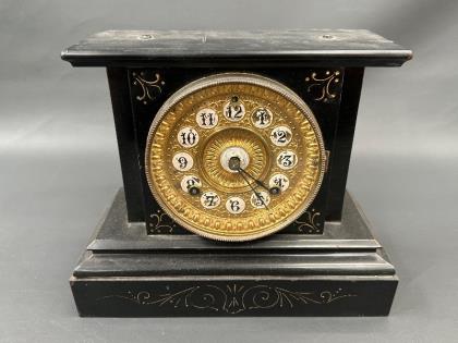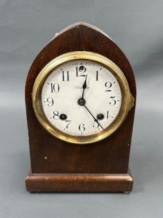 NEW HAVEN CLOCK CO MANTLE CLOCK - KEY & PENDULUM IN OFFICE - 26CM (H) X 26.5CM (W) X 13CM (D)
