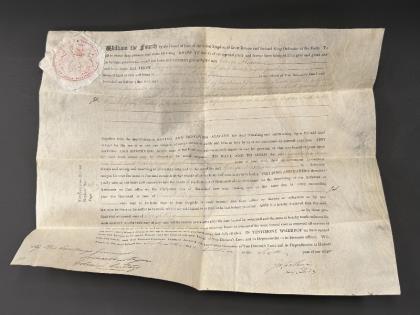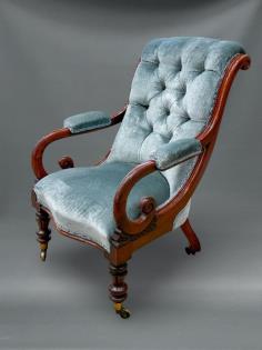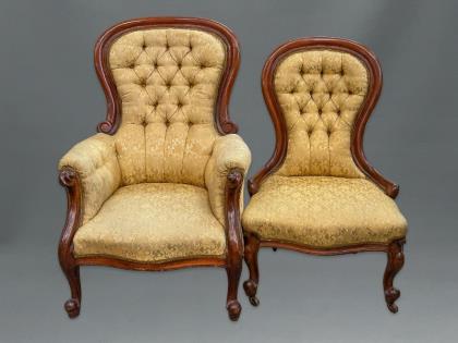 PAIR OF 19TH CENTURY CEDAR LADIES & GENTLEMEN'S CHAIRS WITH BUTTON BACKS - 98CM & 90CM (H)