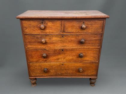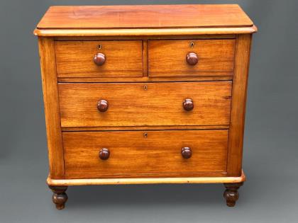 19TH CENTURY CEDAR 4 DRAWER CHEST OF DRAWERS RAISED ON TURNED LEGS - 86CM (H) X 89CM (W) X 43CM (D)