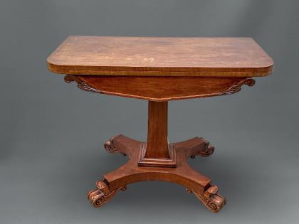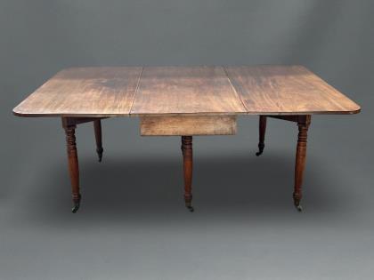 VICTORIAN MAHOGANY PEDESTAL SOFA TABLE ON QUADRAFORM BASE - 72CM (H) X 91.5CM (W) X 45CM (D) CLOSED - 70.2CM (H) X 91.5CM (W) X 90.2CM (D) OPEN