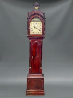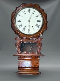 19TH CENTURY WALNUT INLAID WALL CLOCK - 82CM (H) X 42CM (W) X 12.5CM (D)