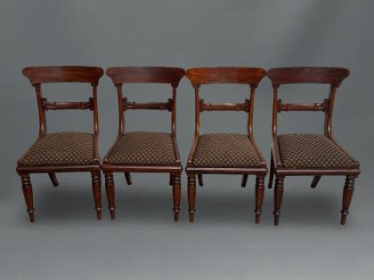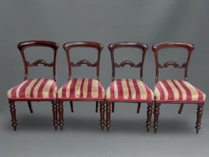 SET OF 4 19TH CENTURY MAHOGANY DINING CHAIRS RAISED ON TURNED FRONT LEGS - 1 REPAIRED - 86CM (H)