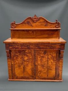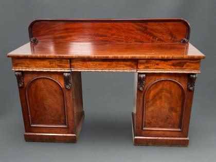 19TH CENTURY MAHOGANY TWIN PEDESTAL 3 DRAWER 2 DOOR SIDEBOARD FLANKED BY CORBELS - 117.5CM (H) X 168.5CM (W) X 57CM (D)