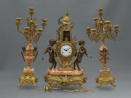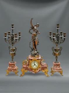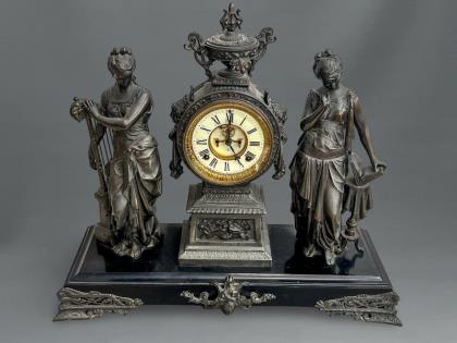 ANSONIA CLOCK COMPANY FIGURAL MANTLE CLOCK - ARTS & COMMERCE - 51CM (H) X 60CM (W) X 20CM (D)