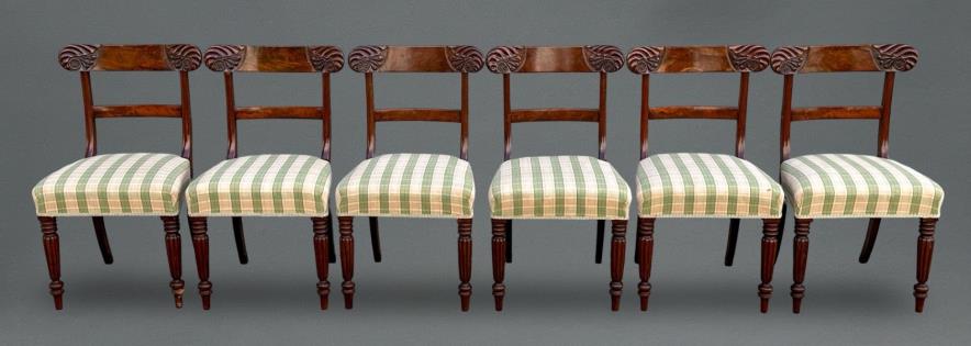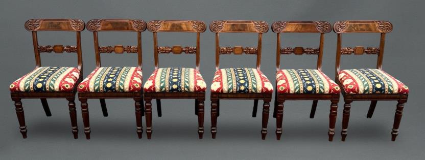 SET OF 6 19TH CENTURY MAHOGANY DINING CHAIRS WITH CARVED MID-BARS & BACKRESTS RAISED ON TURNED FRONT LEGS - 87.5CM (H) X 48CM (W) X 52CM (D)