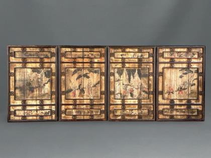 SET OF 4 19TH CENTURY CHINESE HAND PAINTED ROSEWOOD WALL HANGINGS - 92CM (H) X 58CM (W) EACH PANEL