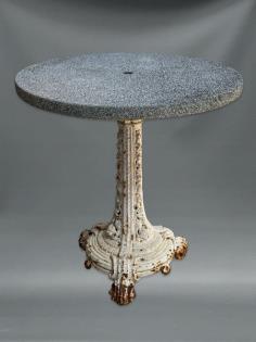 VICTORIAN CAST IRON OUTDOOR TABLE WITH STONE TOP - 79CM (H) X 75.5CM DIAMETER