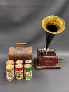 EDISON GEM PHONOGRAPH WITH 6 ROLLS - 51.5CM (H) X 30CM (W) X 19.5CM (D)