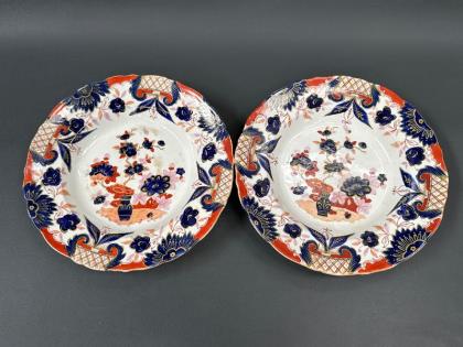 PAIR OF 19TH CENTURY ALCOCK'S INDIAN IRONSTONE BOWLS - 26CM DIAMETER