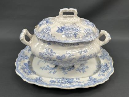 19TH CENTURY ASIATIC PHEASANTS TUREEN - 26CM (H) & MEAT PLATE - 45CM (W) X 37CM (D)