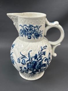 DR WALL WORCESTER PORCELAIN JUG C1760 - CABBAGE MOULDED BLUE & WHITE - 29CM (H)