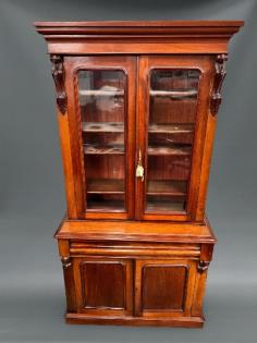 19TH CENTURY MAHOGANY & CEDAR 4 DOOR SINGLE DRAWER GLASS TOP BOOKCASE - KEY IN OFFICE - 217CM (H) X 110.5CM (W) X 48CM (D)
