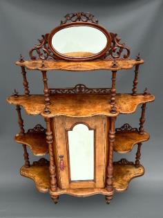19TH CENTURY WALNUT SINGLE MIRRORED DOOR WHATNOT RAISED ON CASTERS - 141.5CM (H) X 108CM (W) X 32CM (D)