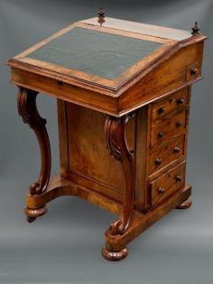 19TH CENTURY WALNUT 4 DRAWER DAVENPORT - 86CM (H) X 56CM (W) X 57CM (D)